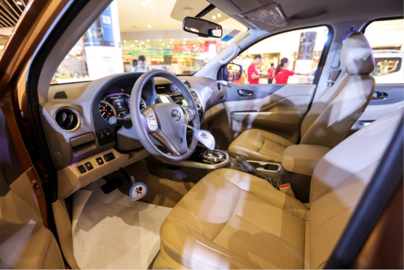 Nissan Navara PREMIUM PLUS features finely crafted 8-way power leather seat and 2-way power lumbar support for driver while front passenger gets a 4-way power leather seat. Both are Nissan's signature astronaut-inspired Zero-Gravity seats. Fitted with the Auto Dimming Rear View Mirror with Compass, that reduces glare for the driver on approaching vehicles while the digital compass lets the driver know the direction.